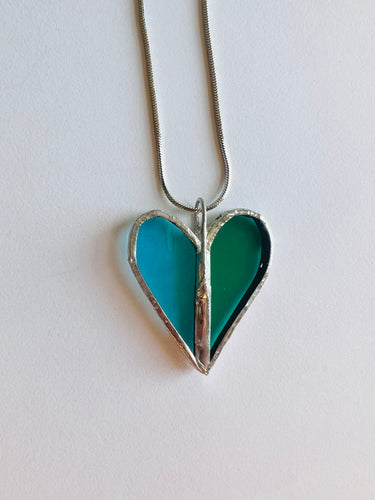 Sky Blue/True Blue Stained Glass Heart Necklace